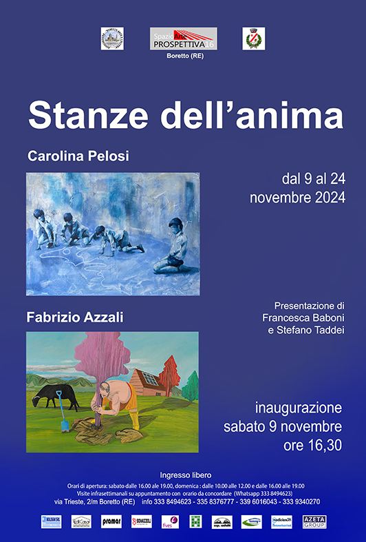 La Galleria SpazioArte Prospettiva16 di Boretto (RE) ha il piacere di ospitare la mostra "Stanze dell'anima" con le opere di Carolina Pelosi e Fabrizio Azzali.